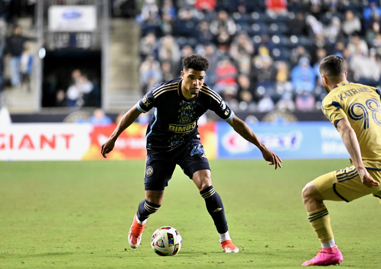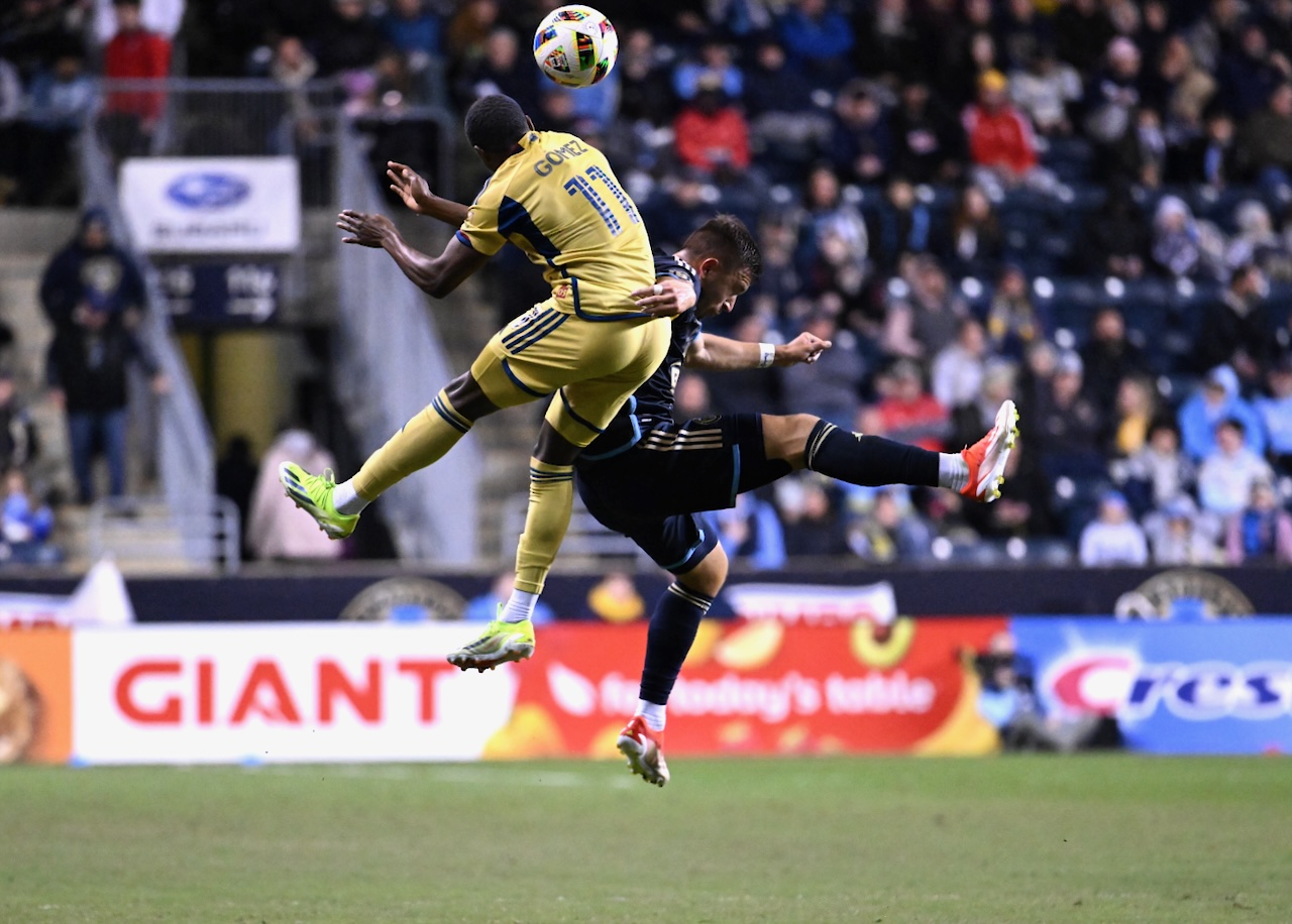 Philadelphia’s José Martínez defending against Cristian Arango.